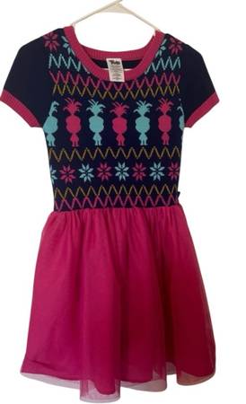 Her fashion sense is "trolly" special, and she will show it in this Trolls Dress. Designed with a soft sweater-knit bodice with a colorful pattern and short puff sleeves, it is finished with a flouncy mesh skirt that she will love to twirl in. Pair it with sneakers for school or ballet flats for any fashionable outing. A must-have look for any true Trolls fan!
