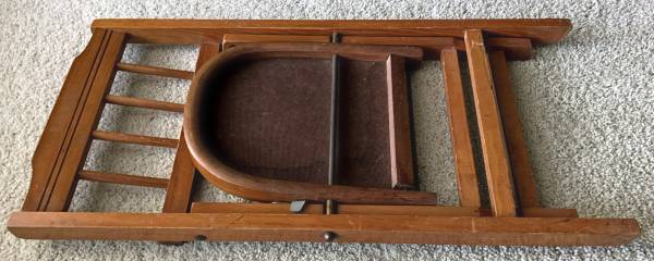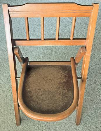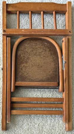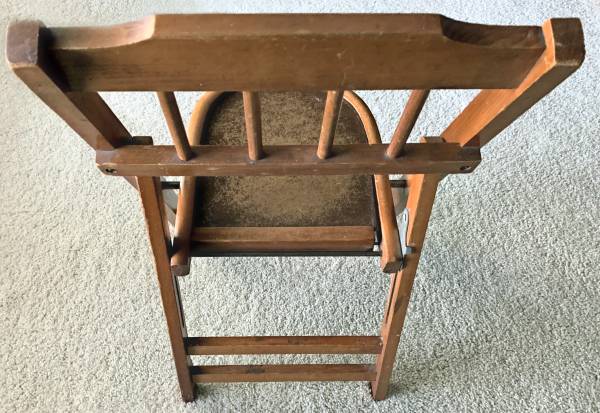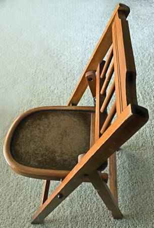 Solid wood desk chair for children's table crafts/tasks Sized for kids age 5-12 years old Very stable, yet folds flat for easy storage In very good condition, some signs of use/wear, but no damage