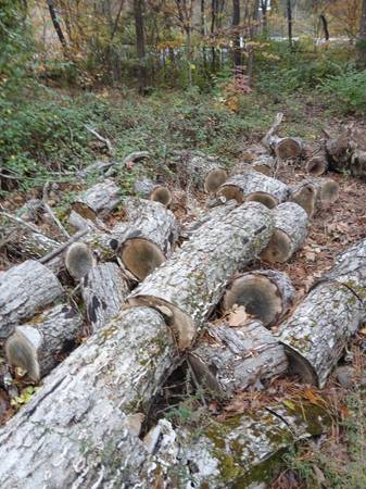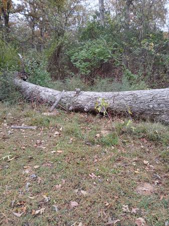 Lots of cut wood plus about a half of tree still needs cut let's barter where u cut the rest of the tree and take all of the wood