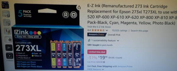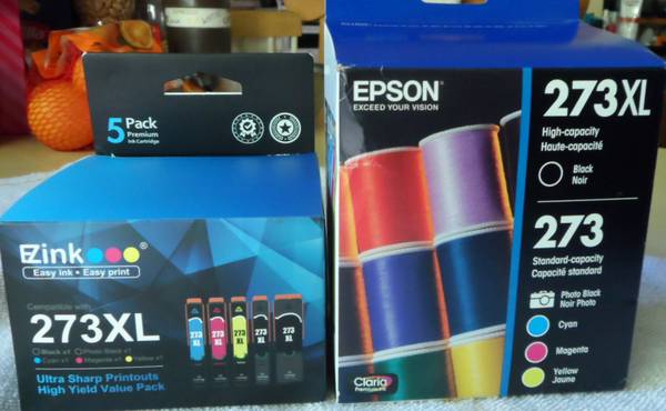 Printer Compatibility: To use with Epson Expression Premium XP-520, XP-600, XP-610, XP-620, XP-800, XP-810, XP-820 Inkjet Printer, Premium quality ink delivers crisp text and graphics. On Epson official website for this GENUINE product it still cost $79.99 at this time and I'm not aware if it has ever gone on sale before not from my knowledge at least then there's also the E-Z Ink Re-manufactured 273 Ink Cartridge that I gotten from Cartridge Canvas as you can see here on the pictures. All I'm asking for both is $80 if that's good enough for you. I am willing to negotiate a favorable price to you to an extent if you want.