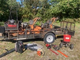 I have retired from my lawn care company. I have a trailer that will haul 3 walk behinds or other combinations of mowers. 2- 52" Skagg hydro Mowers. A Red Max 7500 blower, a Stihl hand held blower/vac and a Echo trimmer. I have many sets of standard and mulching blades. Many, many belts and pulleys. Spare tires and a rim with a new tire. A fertilizer spreader, A snapper push mow with a new deck and engine. Cuts great backwards too. Shovels and rakes and many parts. In January 2020 I put the mowers in the shop to have pumps replaced. I can verify the repairs done at Erb is Swansea IL. That was expensive. I also replaced the engines with Kawasaki 18HP engines. No one came back to work due to covid. So the mowers got loaded but not really used. They cut wet grass better than most mowers. I can't list everything here. This is a lot of good value. I only want $5K for the whole package so I can sell my house and move. I am not entertaining any offers unless you have a 96" Harley soft tail. I don't need or want help to sell. I am not looking to trade for anything other than the bike I mentioned. Any smart business man should understand the great deal I am offering