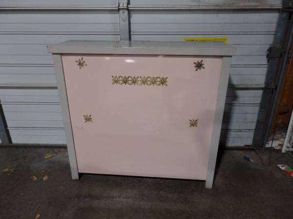 Vintage All Metal Bar 50's 60's Retro - $100 -Great Bar for the Swimming Pool Deck! Great for the She Shed...Man Cave! Christmas Present!!! This is one of my most recent finds. The colors are pink and grey, great patina or could be fully restored. Well made. Great for in door or outdoor use. Great for a pool. Measures approximately 40 inches Tall, 43 inches Wide and 14 inches deep.