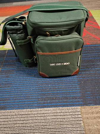 Very cute brand new wine and cheese picnic tote for two. Includes cutting board, glasses, detachable bottle carrier, bottle stopper, corkscrew, etc. Saint Louis Zoo logo! Picnic at Ascot brand. See...