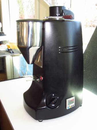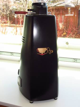 Mazzer Robur modified by Espresso Parts for Grind On Demand electronic dosing, making this the top grinder for professional baristas.