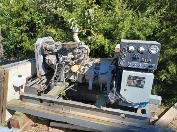 Winco APS35000-4/B, Wired for single phase, but can also be wired for 3-phase. Ran fine when taken out of service , includes ASCO 165 ATS, custom built doghouse, muffler.