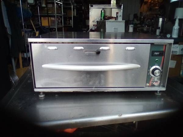 APW single drawer warmer 120v. Will a warm well over 200°. Has a large 6" deep hotel pan in it. Great for nachos or whatever you like to keep warm crisp or moist. $200.
