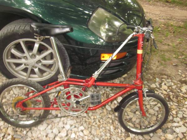 american made high quality take anywhere folding bike. 5 speeds drum rear brake.fits in car trunk,boat or bus. respond by phone only no texts.
