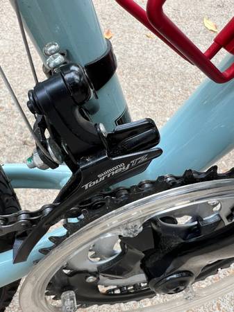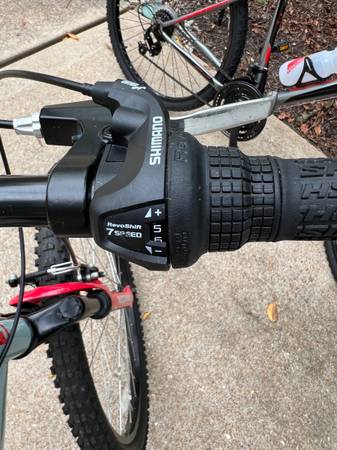 Shimano 7-speed twist shifting provides gears for uphill power and downhill speed