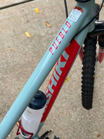 The Pueblo Mountain Bike delivers a smooth ride over trails and rough roads thanks to the responsive suspension fork. Easy-to-shift 7-speed Shimano twist shifting delivers reliable performance on both flat and hilly terrain. Dual linear pull brakes deliver great control over wet and dry conditions. This mountain bike provides wider, off-road tires for solid traction. The comfortable, padded saddle features an alloy quick-release seat binder to make it easy to adjust the seat height for the right fit.