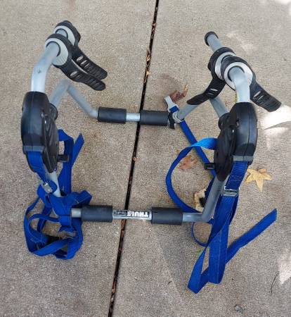 Older Thule Sweden bike rack for a trunk mount on a sedan. Has been sitting in basement for a while, but seems to be in good shape. If you decide you want, you should try on your vehicle first.