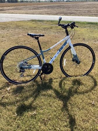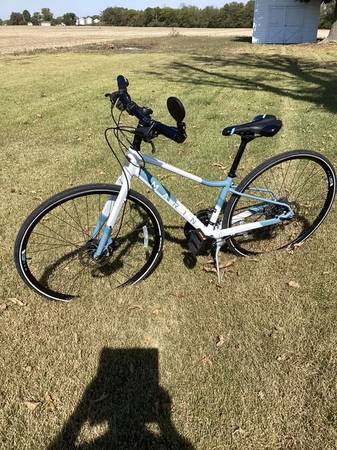 I bought this bike last year and have ridden it very little. As such, it is like new. Since I am a short it is an XS frame with 28x1.25/700x32c tires and 28 gears with thumb shifters. I have added 2" handlebar riser, a rear view mirror ergonomic handlebar grips.