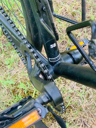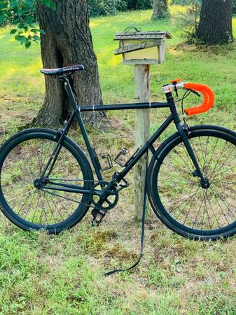 Pure Cycle Original 58cm, drop handlebars, with cantilever brakes. Flip hub is on the single speed, but can be flipped to be fixed gear. Comes with Continental Gatorskins, Surly “Jethro Tule” bottle opener/socket wrench. Prologo Nago Evo ttr saddle (original saddle is included), Cateye Computer , and 3T Mutant stem.