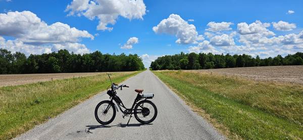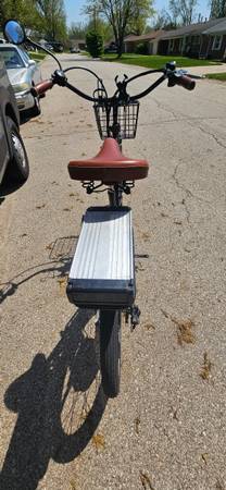 Vintage beach cruiser style ebike. Step through model for easy access. Has 2 batteries, new knobby tire, integrated anti-theft rear locking wheel, comfort seat. Bike has been ridden for years and batteries are recently rebuilt. Has been maintained as needed. Good condition, a few scuffs and scratches but rides so comfortable. Great for medium size person. With 2 good batteries included this bike has superior range and can maximize battery life. Also includes phone cradle, bottle holder, handlebar basket, Over $2K invested.