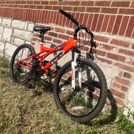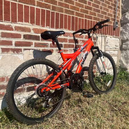 The thing is damn near brand new. Paint is still blingin. Has some minor blemished from storage and transport but otherwise in extraordinarily good condition. Has received a thorough inspection and tune from the mechanic September 12, 2025 and is now just waiting to be rehomed. 24” wheels on full suspension frame with 18 Speeds. Feel free to email or text if you are interested: sevenzeroeight ninetwoone ninetwoseventhree. Thanks for dropping by! 🤗