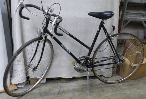 Schwinn world ladies bike 10 Speed Black tires flat and some rust on handle bar