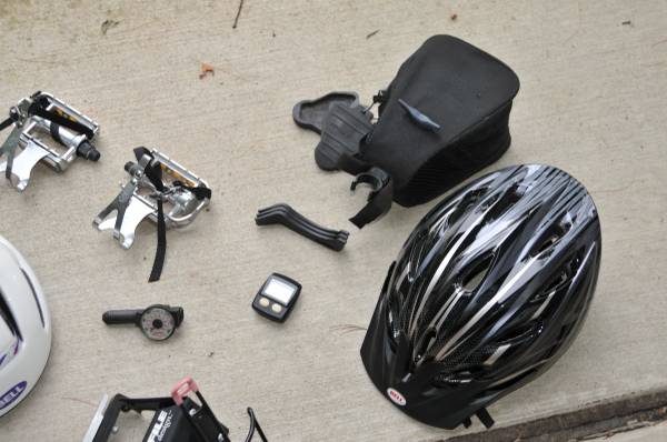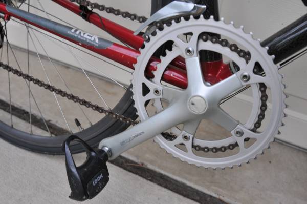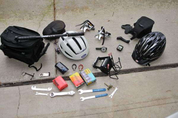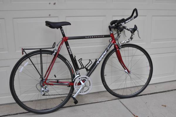 Original owner is selling a complete bicycling package. Includes the TREK 2100 Composite red/carbon frame with all Shimano 105 components. MATRIX ISO rims have newer Specialized ALL CONDITION FLAK JACKET 700 x 23 tires. LOOK cleats with SPEED shoes (size 8,5) I also have a set of old-style pedals if you do not like the LOOK. There is two BELL helmets included along with miscellaneous Park tools and various travel/gadget bags. I found these useful on long road trips. It has a older CATEYE speedometer. Please view the photos for all the items. Also included in the price is the Blackburn Magnetic Resistance trainer and Bell bicycle carrier.