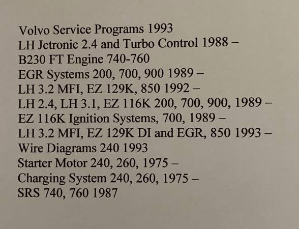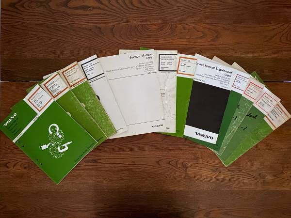 12 various Volvo Service Manuals ranging in dates from 1975-1993, list of manuals in pic