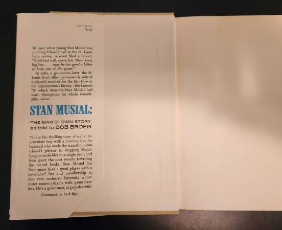 Stan Musial "The Man's Own Story" 1964 1st Edition (With Jacket) Call 314-3Z3-1Z74 to see it (Z=2) Thanks for Looking!