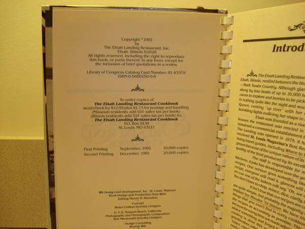 Vintage Elsah Landing Cookbook! Great gift idea! Hard to find original "Elsah Landing Restaurant" Cookbook, in "fine" condition. $10.