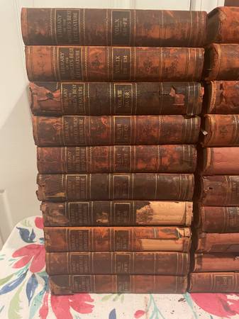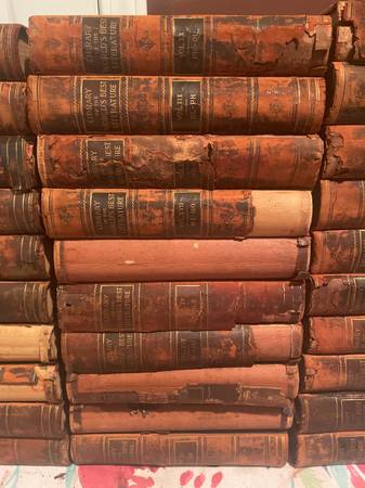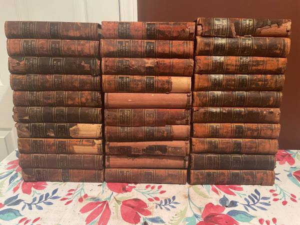 Cool, vintage complete set. Listing this in fair condition because the exteriors are a little rough. As seen in pics, there is some chipping to the bindings, as these are old and brittle. Under the chipping, however, the covers and bindings are solid and all pages are fully intact. Interiors are good+. I noticed stamps on a few pages, but pages are otherwise clean. I can't find a complete set of these anywhere online.