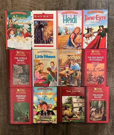 This offer is for a lot of 12 Illustrated Classic Books for only $20! Some of the books are Treasury of Illustrated Classics and some are Readers Digest Illustrated Classics. But all of these books are all hardcover books in excellent to "like new" condition from a smoke free/pet free home. I am offering this Book Collection as a Lot of 12 Books for only $20! ***Note*** If interested in purchasing any one book from this lot, the price would be $5.00 per each book. So, if wanting only 2 books, the price is $10 for 2 books, $15 for any 3 books, etc. Otherwise, only $20 buys this entire lot of 12 Books!*** These books would make a great addition to any library. They are fantastic for kids, youth, and adults. These books are all in Excellent to "like new"Condition from a smoke free/pet free home.