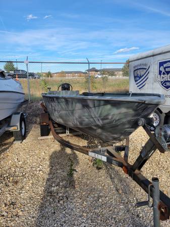 16' aluminum fishing/hunting boat. I used the boat to hunt the islands on the Missouri River and catfish. The boat is pretty plain but was perfect for what I needed it to do. Has 35hp mercury motor that runs great. I have good titles for boat,motor and trailer. Call or text
