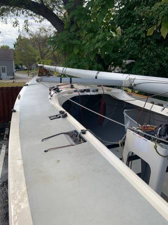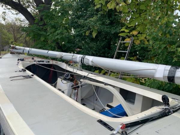 Sale includes brand new racing sails used once. Practice sails and 3 racing spinnakers.