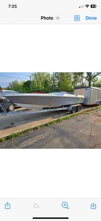 New transom, stringers, bulkheads, back seat, front seat bases, gas tank and silver painted sides. Deck needs re paint. New Mercruiser Bravo hole cut. Only other holes in the whole boat are fuel fill and breather.