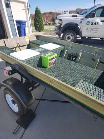 1987 lowe jon boat. New casting deck with hydro-turf, interior lights for night fishing, new cooler live well w/aerator, new seat and post, comes with 12v lithium battery and charger, and built-in storage. Comes with 70lb minn-kota trolling motor. Hull has super slick for easy pulling onto Trailer. New bunk boards and pull strap, new tires on Trailer. Clean titles for both