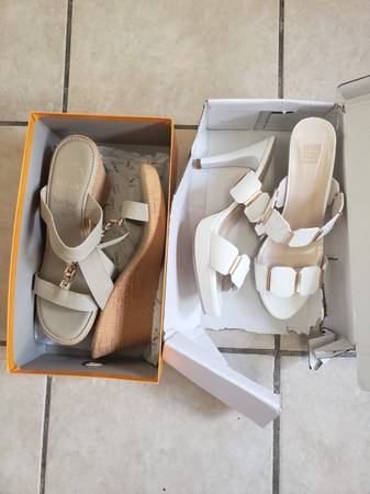 .Prs. Of NIB Sz 8.5 Womens Summer heels. One white and one beige. Message for more details or call. 15.00 each. 3" heel.