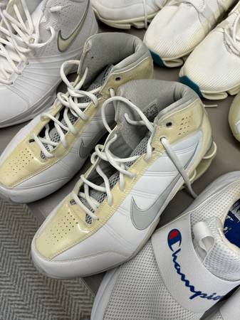 We have a variety of white athletic shoes / tennis shoes for sale. Most are barely worn. They are all men’s size 8 and some are Nike’s. $10.00 per pair or we can make a deal for all of them. Cash...