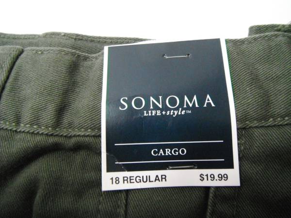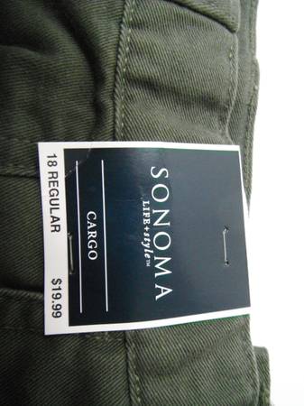 Brand new, never worn Sonoma Cargo pants size 18 Regular. Has an adjustable waist band. Inseam is 29" and waist is 29". Color is dark green. Very nice pants. Non-smoking and pet-free home. I bought these for my son to wear for his Boy Scout uniform but somehow they never got worn. ☹️
