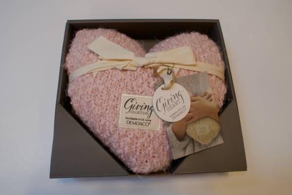 ALL BRAND NEW... never used... ready for gift giving. Giving Collection Handmade with love by DEMDACO. Bought from Hallmark. All items are a very pretty pink color and from a smoke and pet free home. Includes a blanket, shawl, and heart. If you add this all together, it cost $181, plus tax for all 3 items. What a deal for quality items! If you research these items, the reviews are all outstanding!