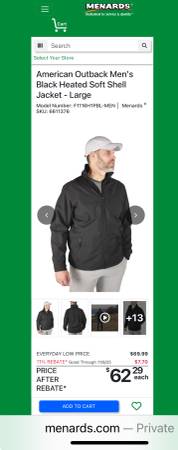 New Never Worn With Tags New with tags never worn. American Outback Men's Black Heated Soft Shell Jacket XL. Asking $50 cash only.