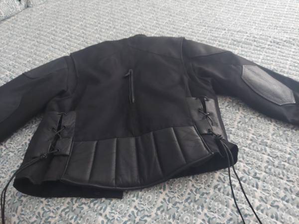 Ladies black canvas biker jacket- size L. Excellent condition. Zip in zip out quilted lining. All zippers work