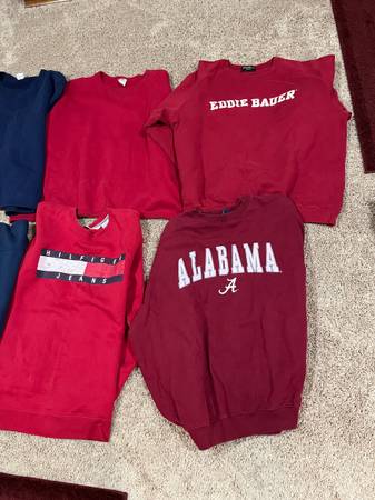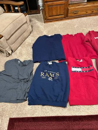 Seven winter pullovers. Sizes XXL, 4 X and 2X. I don’t respond to email so text or call.