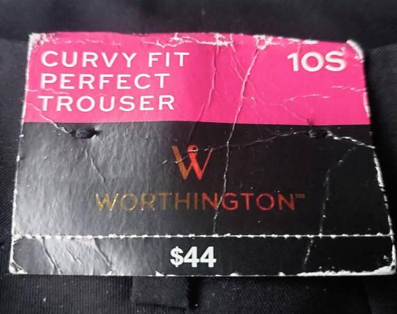 Womens Worthington Curvy Fit Perfect Trouser-NEW, Black, Size 10S, MSRP $44, Sell $10