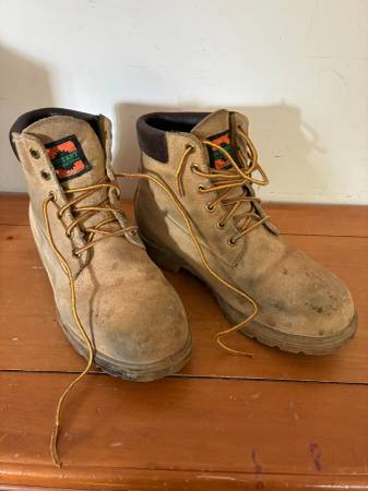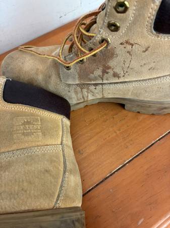 Boots Men's Size 8 1/2 HY-TEST Steel Toe Suede w/Leather Cuff. Something dripped /spilled on inside of right boot. I'm not sure of the size of the boots (because it's not readable inside, so I used a boot I know the size of). I live close to south county mall in Oakville. I prefer text or call please, thanks.
