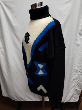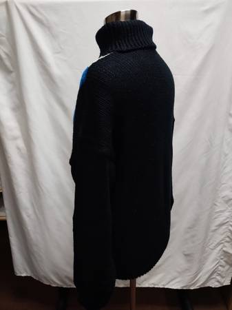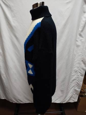 Clothes on Fire Black/White/Blue Geometric Turtleneck Sweater - Size M