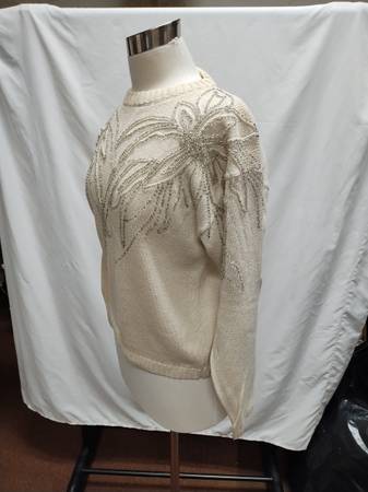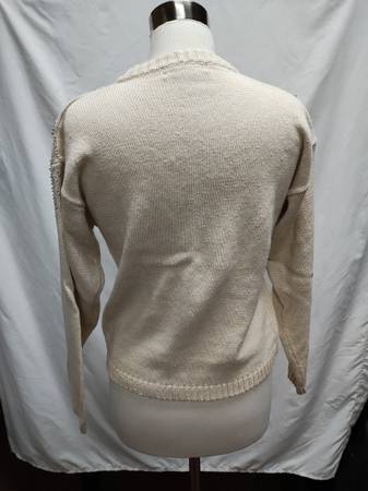 Kashiwa Vintage Ivory Beaded Floral Crew Neck Long Sleeve Sweater - M