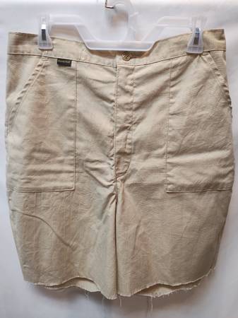 Vintage Khaki Zip-Up Shorts by Maverick - Women's 34 Khaki zip-up shorts. Elastic back of waistband, front zipper with single button closure. Two front slash pockets. Ragged hemline. All...