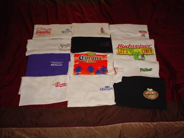Here for sale is a lot of 12 Collectible Bar Shirts (Most are Extra Large but a few Large). They are around 25+ years old. Most were worn just once at work for a Cinco de Mayo Party. Some show use/wear/age but most are clean and well cared for so please see pictures to judge the condition of each for yourself - they come from a smoke and pet free home.