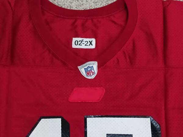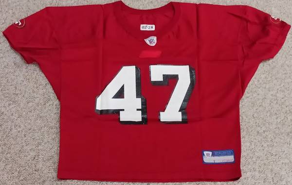 Here for sale is a San Francisco 49ers Rookie Practice Jersey #47 Jersey (Size 2XL). This is a Reebok NFL Licensed Jersey. This Jersey shows wear but still looks great.