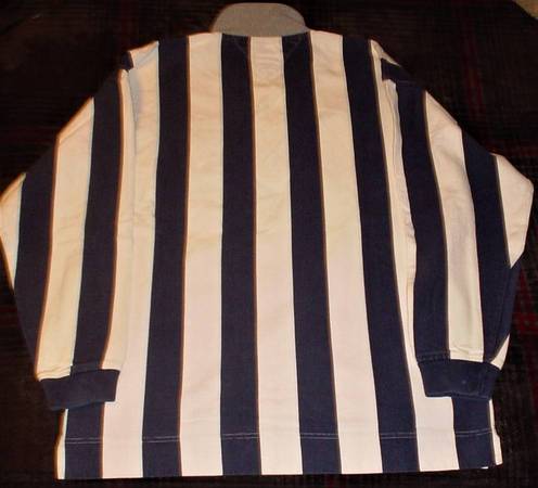 Here for sale is a Tommy Hilfiger Athletics Men's Rugby XL long-sleeve shirt with Blue & White stripes (hockey style with the laces). This is a good quality item - great winter gear. It shows little use and looks in very good condition (no stains, rips or tears). Item was well cared for and comes from a smoke and pet free home. Please see pictures to judge the condition for yourself.