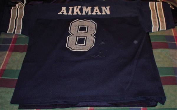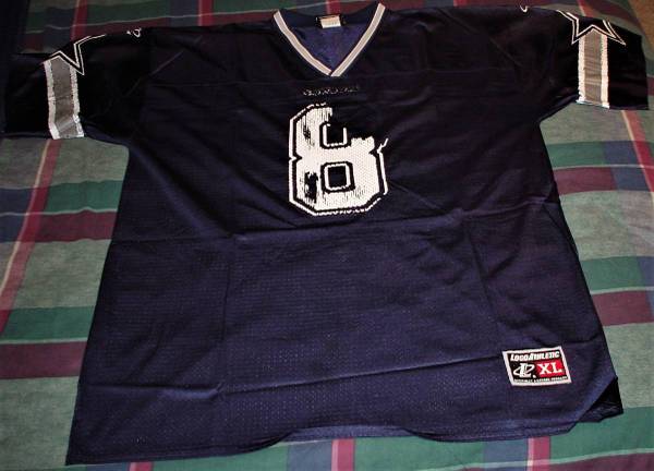 Here for sale are (2) Troy Aikman #8 Dallas Cowboys Jerseys (they both fit like XL but one states it is XXL). These show use but they're still in good condition (okay, the #8 is coming off on 1 of them but still fine to lounge around and watch the games in or do yard-work in). They are made by Logo 7/Athletics. Items were well cared for and come from a smoke and pet free home. Please see pictures to judge the condition for yourself.