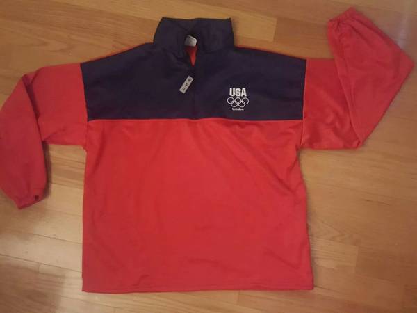 Here for sale is a USA Summer Olympics Sweatshirt/Pullover/Jacket type of overshirt (with USA Olympic Committee label - Made in the USA). It has two pockets and top zipper (size is XXL - but I think fits more like an XL). Item was well cared for and comes from a smoke and pet free home. This is a great looking item but, please see pictures to judge the condition for yourself.