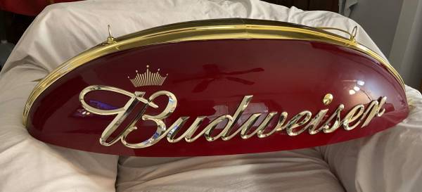 Rare Vintage Anheuser-Bush Budweiser Hanging Pool Table Light, used and in good working condition. 42” long x 17” wide x 12” tall, 9 ft cord. (Needs hanging chain) Asking $450