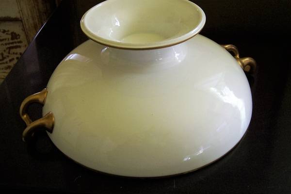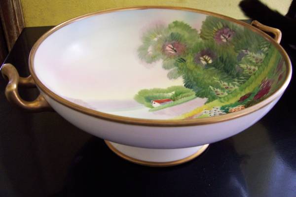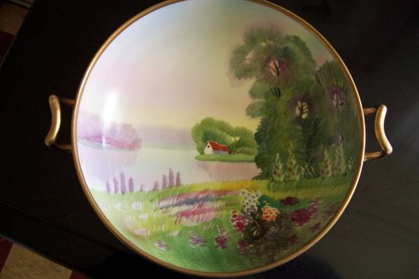 8 1/2" diameter, 10" handle to handle, and 3 1/2" high.
