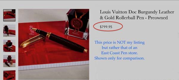 The photos offered were chosen to illustrate all the aspects of the pen. The second and third last photos are two online screenshots from a well-known East Coast pen store which is re-selling an indentical pre-owned pen for $ 799.