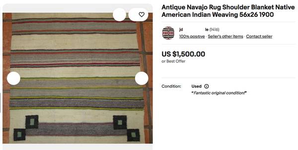 included are pictures of similar items that were located online which verify colors, size and patterns as authentic Navajo